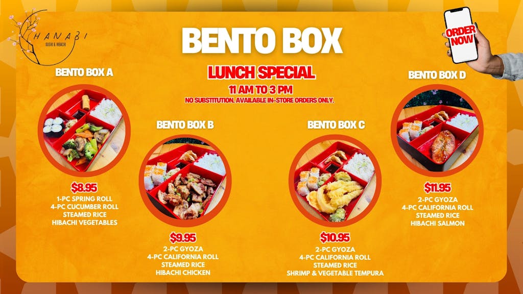 Hanabi Sushi & Hibachi in Charlotte, NC, offers a fast and casual dining experience that serves savory and flavorful hibachi and sushi rolls. Featuring hibachi entrees & combinations, classic and premium sushi rolls, perfect appetizers, Hanabi delights with fresh ingredients and healthy options.